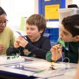 At FPQU pupils follow the Fulham Primary curriculum, differentiated to meet their needs, so that they can, where possible, integrate with their parallel link mainstream class for different subjects. They attend the same music, and PE lessons and after that participate in other subjects on an individual needs basis. This might include taking part in one element of a lesson and then returning to the unit class to build on the learning at an appropriate pace and level. This fluid approach is facilitated by the collaboration between the teachers in the unit and the link classes and allows the pupils, with TA support, to move seamlessly between each class even within a lesson.