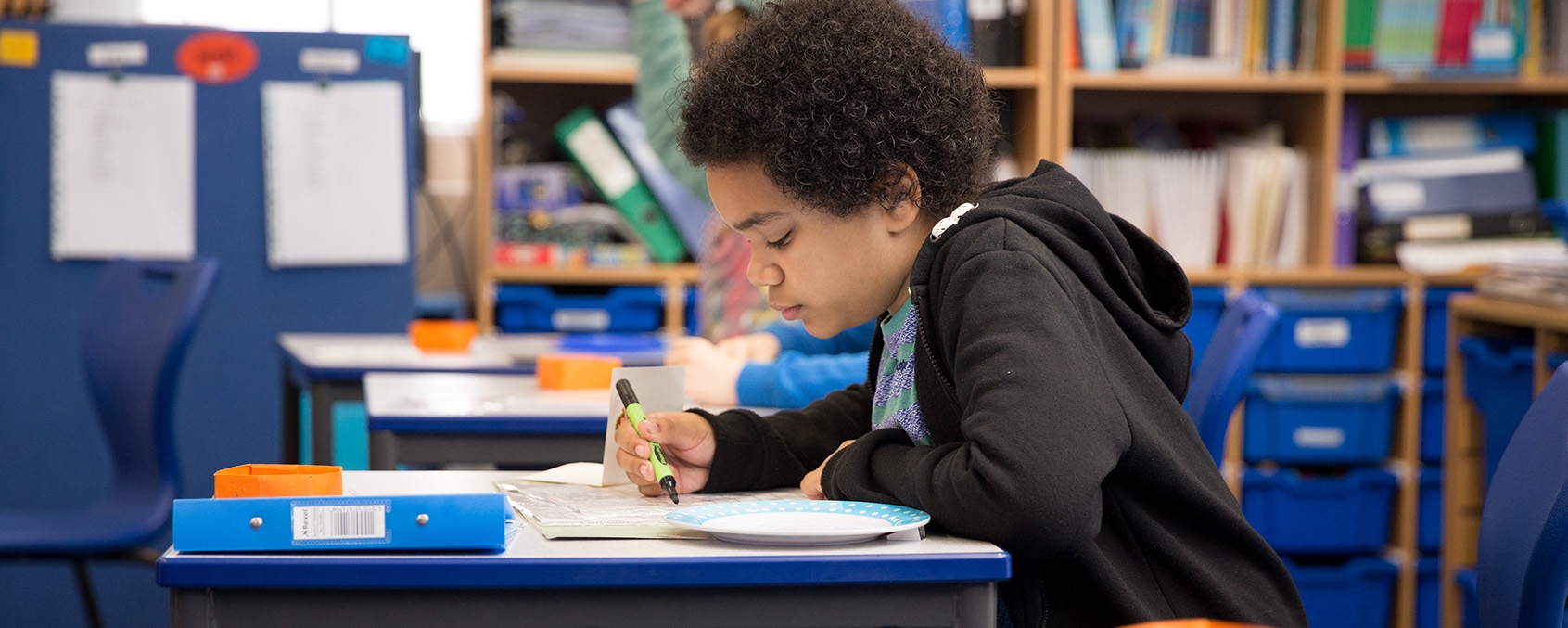 While the classrooms are designed to support the very specific learning needs of students on the autism spectrum, with visual supports, areas for work stations and sensory circuit equipment, they are not as highly structured as those on the main Queensmill site reflecting the developmental level of the pupils.