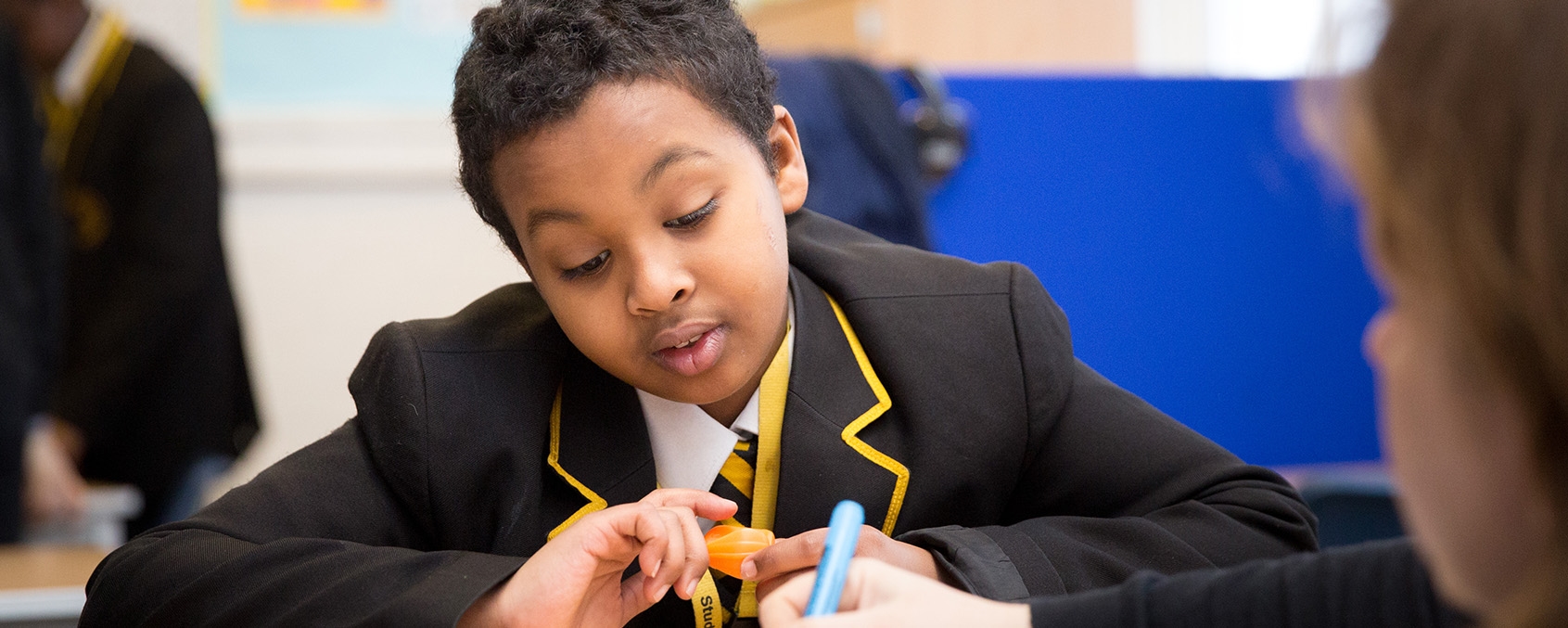To this effect, the Q4 resource base students are dual-registered and are a valued part of both Queensmill and Fulham Cross Academy. Staff members in the resource base are employed and trained by Queensmill School. They are dedicated specialists who are able to support students with their curriculum-based learning and with the development of their social-communication and emotion regulation skills. Every student is a part of both a Queensmill resource base classroom and a mainstream form group. This enables students to access highly differentiated and personalised curriculums within their resource base classrooms, while enjoying the benefit of interactions with mainstream peers in other lessons, at lunch-time and at break.